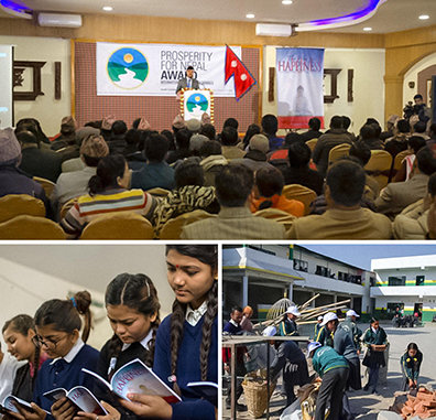 Mais pour changer l’avenir du Népal, il est nécessaire d’atteindre les jeunes. À cette fin, des réunions ont été tenues en 2016 avec le Ministre du développement urbain, le général des forces armées du Népal et le président des organisations des écoles privées et des pensionnats du Népal. Cela a incité des plans qui aideraient à réaliser le rêve d’un Népal plus fort et plus prospère en fournissant aux jeunes le guide de principes moraux du Chemin du bonheur.