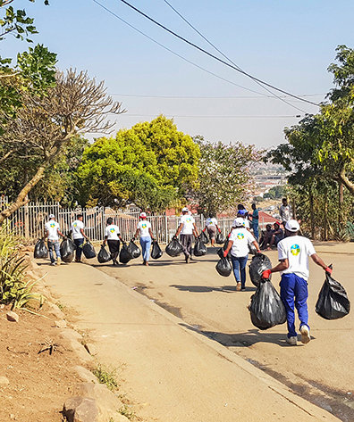 Les nombreuses activités du Chemin du bonheur en Afrique du Sud ont inclus, la campagne prendre soin de l’environnement dans la ville en bord de mer de Durban, basée sur le précepte 12 du Chemin du bonheur, Sauvegardez et améliorez votre environnement. Au-delà des jolies plages se trouvent les quartiers pauvres, parfois même des villes de fortune. Pour commencer, le chef d’équipe de Durban leur a rendu visite avec Le chemin du bonheur en main, distribuant les livrets et dispensant la formation sur le précepte 12.